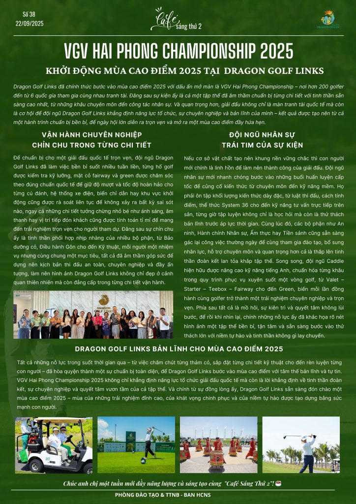 Mời Anh/Chị đón đọc Café Sáng Thứ Hai – Số 38 để cảm nhận nhịp đập sôi động của Dragon Golf Links trong mùa cao điểm – nơi nỗ lực và đam mê hội tụ, làm nên một mùa giải đáng nhớ.