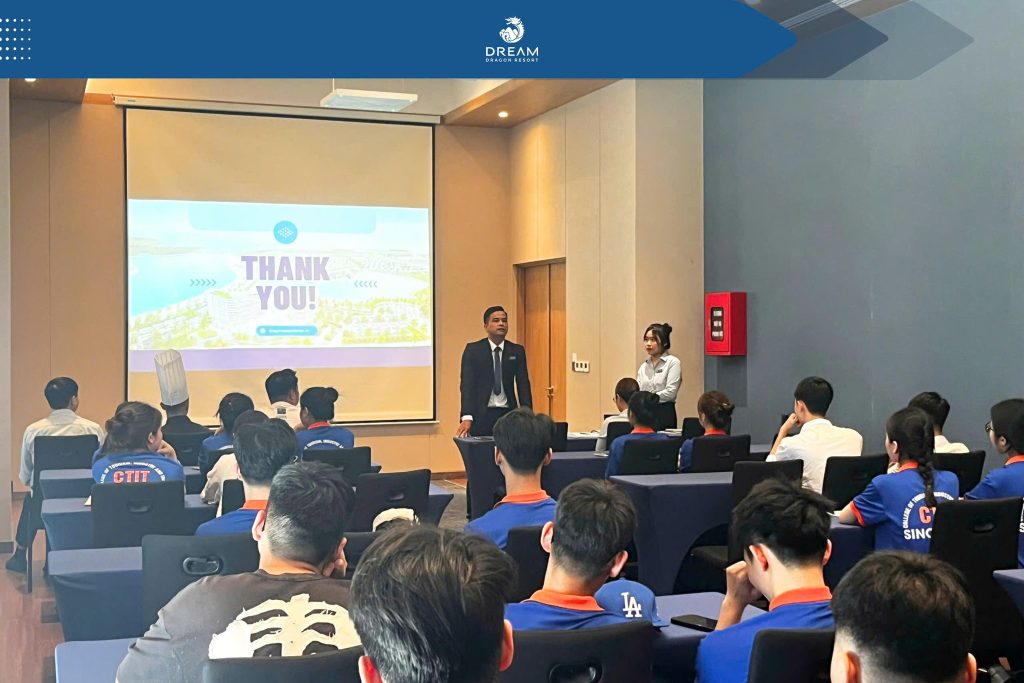 Ngày 12/5/2025, đại gia đình Dream Dragon Resort vui mừng chào đón 25 bạn sinh viên đến từ trường Cao đẳng Du lịch & Công thương Hải Dương! Một hành trình mới chính thức bắt đầu – nơi mỗi trải nghiệm sẽ là một dấu mốc quan trọng trên con đường trưởng thành và phát triển sự nghiệp của các bạn!