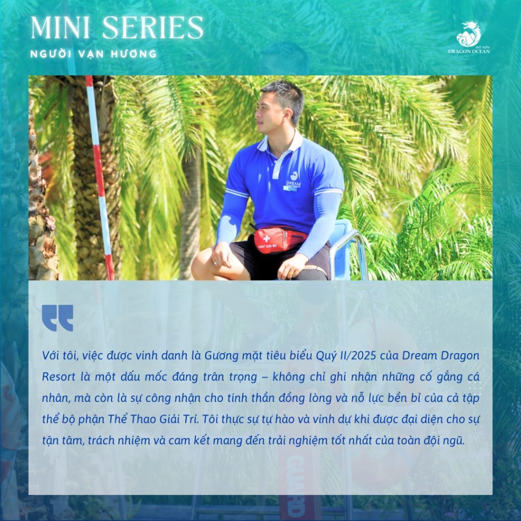 Với anh Nguyễn Trung Hiếu – Nhân viên Cứu hộ cùng đội ngũ CBNV bộ phận Thể thao Giải trí của Khách sạn Dream Dragon Resort, ý nghĩ ấy luôn hiện hữu trong từng ca trực. Đằng sau bộ đồng phục và kỹ năng cứu hộ là một con người luôn để tâm đến từng ánh mắt, từng cử chỉ cầu cứu, và sẵn sàng lao vào làn nước bất kể thời khắc nào.