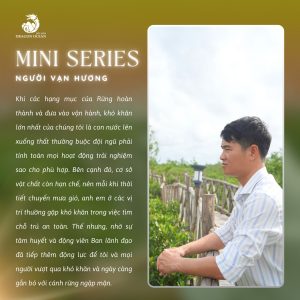 Nhân vật của số 08 là anh Phan Đăng Nho – Phụ trách Vận hành Rừng Ngập Mặn, người đã gắn bó từ những ngày đầu cùng tập thể vượt qua muôn vàn khó khăn để đưa rừng vào hoạt động.